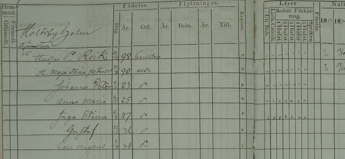It was from here that soldier Petter Johansson got his new surname; Reik. Vång is an older word meaning fence, open field or similar. Carl Magnus lives here with his mother and father and his four older siblings; Johannes Peter (b. 1823), Inga Stina (b. 1825), Anna Maria (b. 1825) and Gustaf (b. 1831) until 1842 when he and the family moved to a farm, Fagraryd under Lammåsa Östergård.