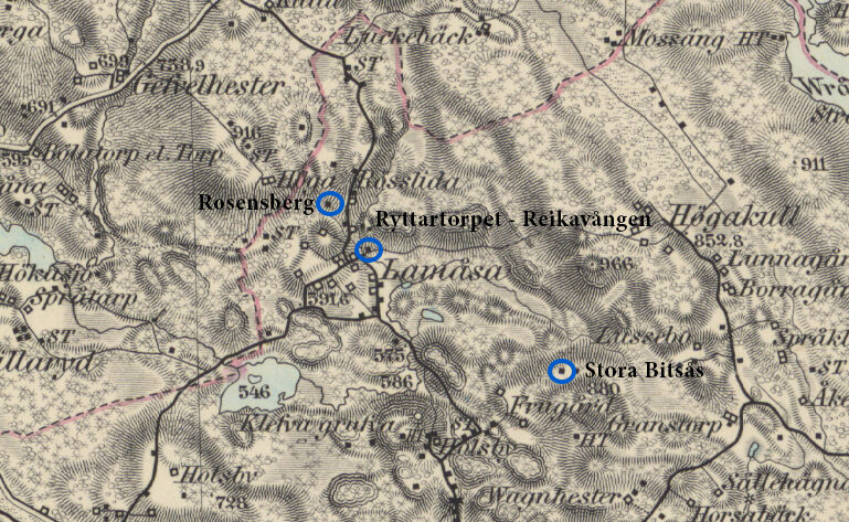 When Carl Magnus Peterson was born on 3 April 1834 in Björnstorp, Alseda, the father, the soldier Petter Johansson Reik, was 41 years old and the mother, Maja Stina Petersdotter, was 43 years old. Björnstorp, which was also called Ryttartorpet and was also called Reikavången, is today long gone but was located in Lammåsa outside Skede.