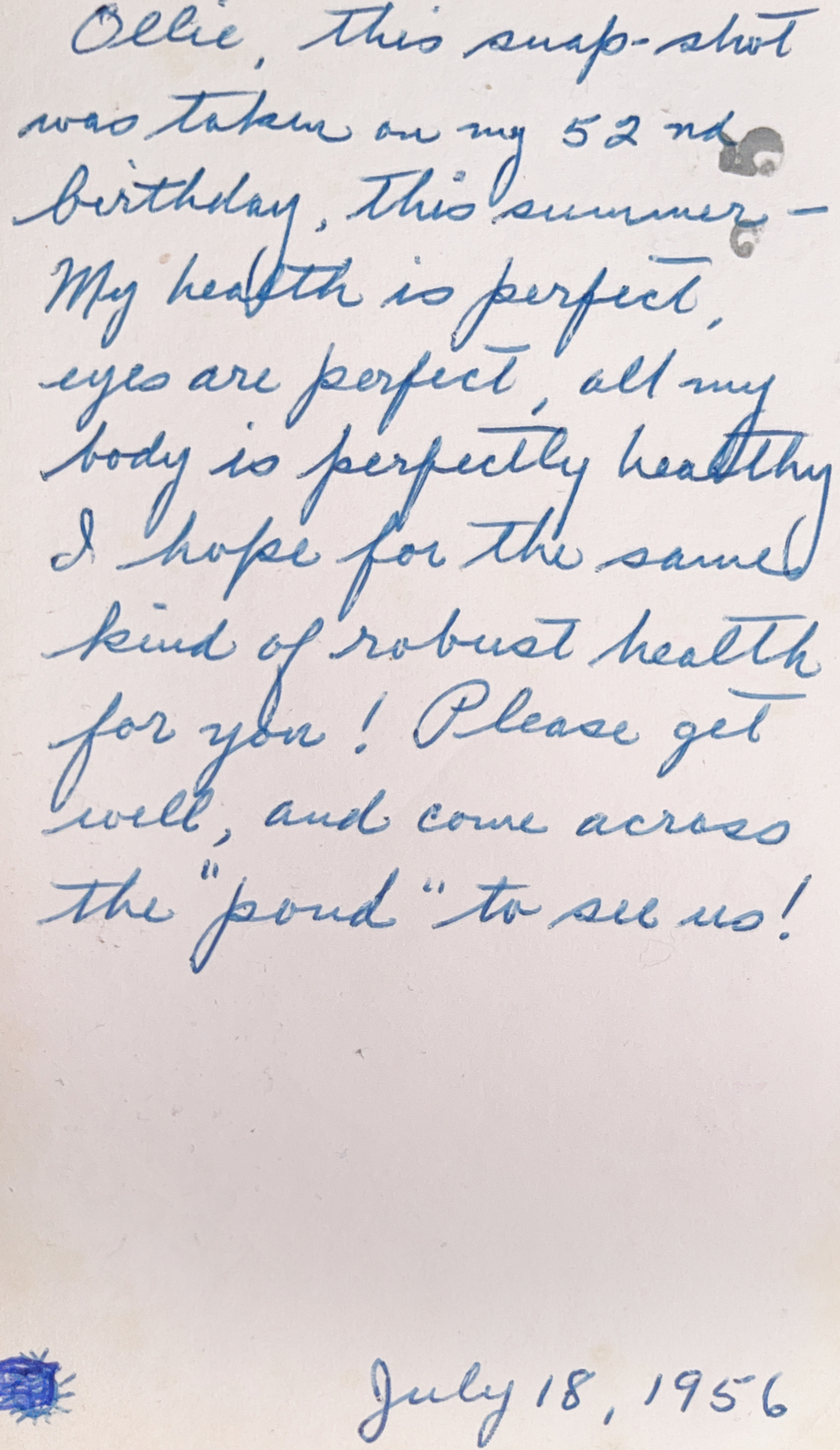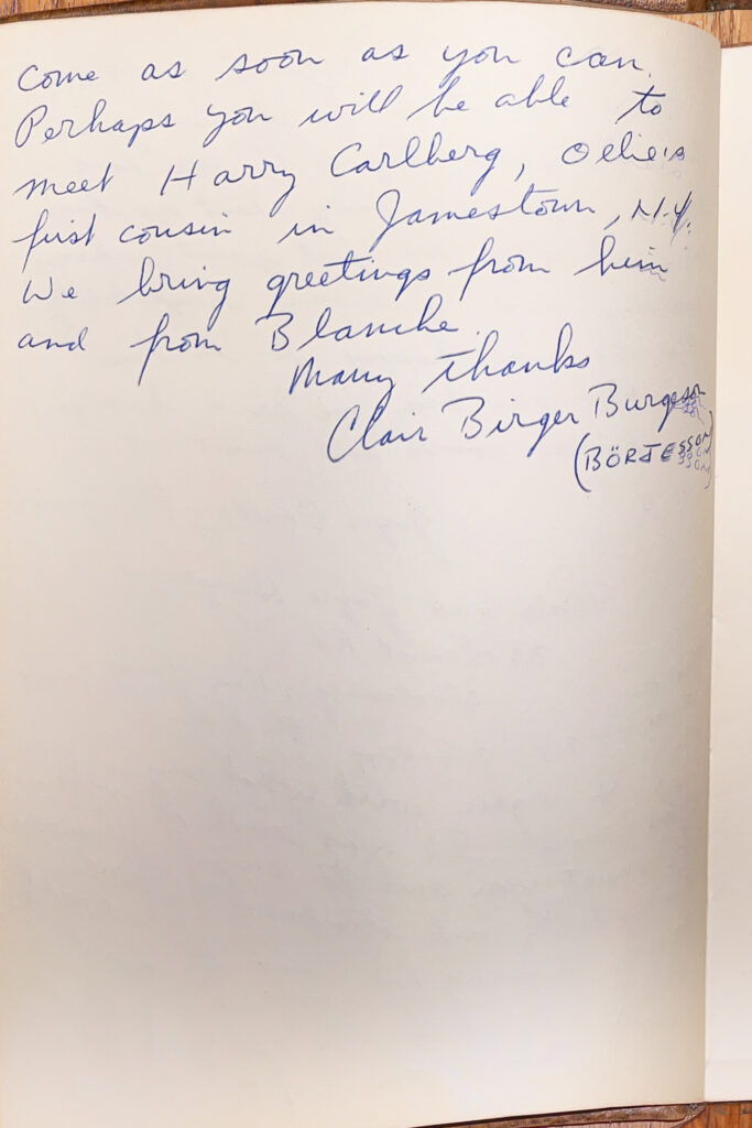 In July 1956, Blanche sends a card to Olof ”Ollie” Karlberg. Three years after the invitation from Blanche, Olof and Signe go to Jamestown.