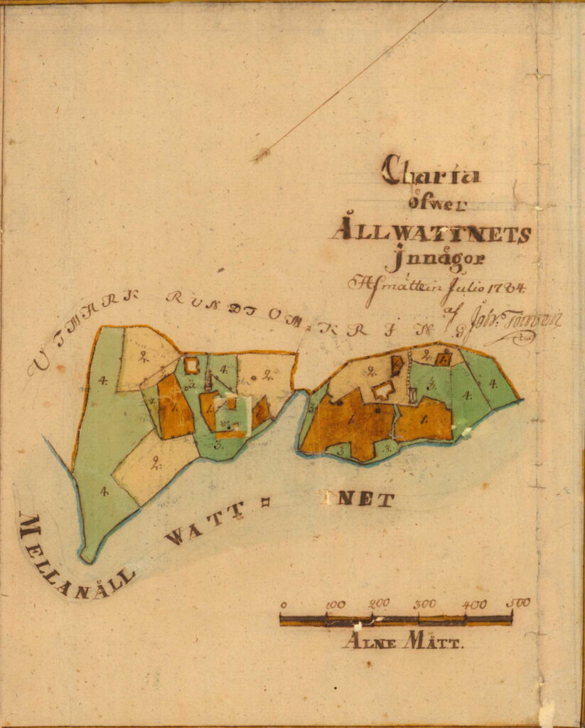 Under 1780-talet kom lantmätarna till Alavattnet. Avvittringen började – staten ville ha ordning, tydliga gränser, och i slutänden: skatteintäkter. Hallings gård mättes upp, arealerna skrevs ned, resurserna bedömdes.